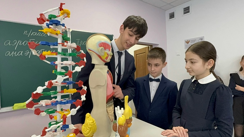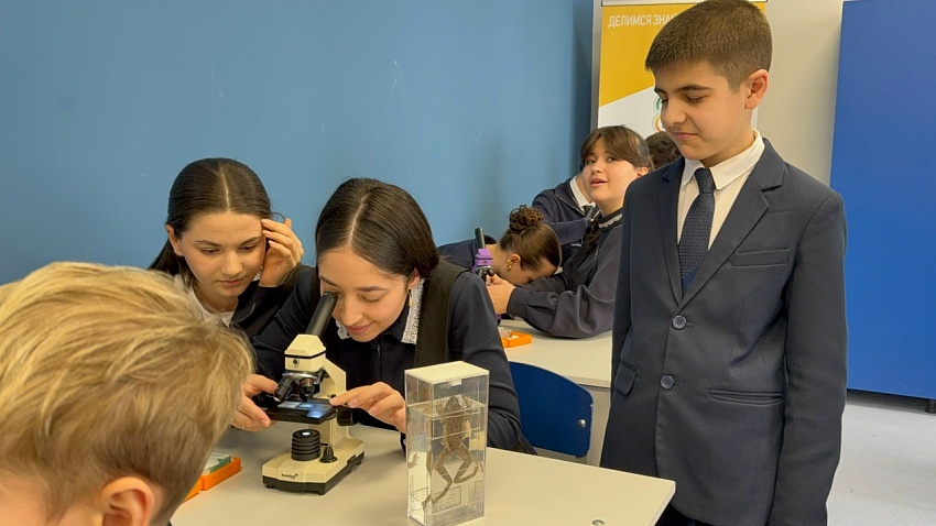 Кроме того, учитель биологии Ригана Александровна вместе со старшеклассниками открыли для активистов 5 классов интересный мир биологии через микроскоп, а также продемонстрировал на макете, как устроен наш организм.